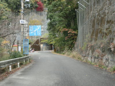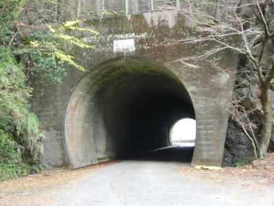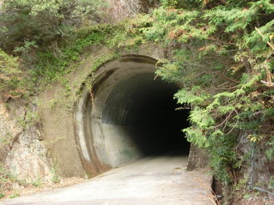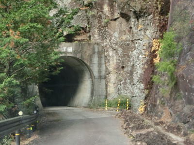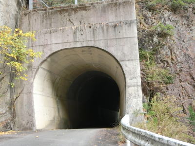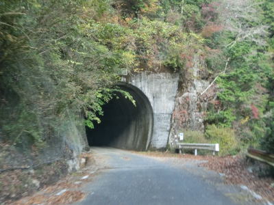 | 奈良県上北山村に入ってからも古川沿いの狭路が続いているが、ガードレールの設置率が若干低くなっている。ミキ橋を渡った後に瀧トンネルをくぐる。このトンネルも坂場、坂下、長尾、八幡の各トンネルと似たような高さと幅である。 | ||