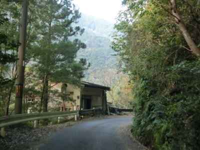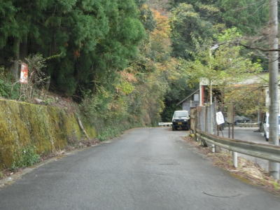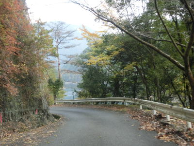 | 溝を浚えた堆積物がなくなっても道路状況が良くなる訳でもなく坂本貯水池に沿ったカーブの多い狭路が延々と続いている。R425の酷さに代り映えのしない風景が続くという点も挙げられる。これまでのトンネルよりも幅の広い坂本トンネルをくぐった先でサンギリ林道との交差点を通過する。この林道は坂本ダム天端を通っており、上北山村の中心部まで繋がっている。ただし、R425がこのような状態なので林道の状況は推して知るべしといったところである。なお、坂本ダムによっていくつかの集落が水没したが、その代替地のひとつにナゴセ集落が挙げられたものの移転希望者はいなかったらしい。 | ||