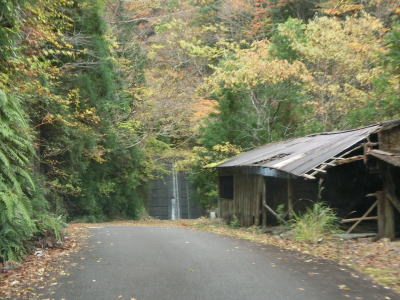 | 82.備後川林道との交差点を道なりに右へ進む | 83.廃屋が点在 | 84.きれいな路面の箇所も少なくない |