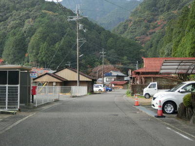 | 2車線快走路を走っていると幅員減少の警戒標識が立っているが、それを過ぎても道幅が狭くならずに寺垣内トンネルをくぐる。トンネルの旧道は1.8車線幅の区間がある事からバイパスが開通してからも撤去されずに残っているものと推測される。なお、寺垣内トンネルは2000年頃に供用されたため、20年以上放置されている事になる。寺垣内トンネルから少し走ると周辺の建物が増えるが、その辺りが下北山村の中心部で、村役場も国道沿いにある。 | ||