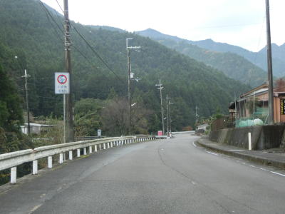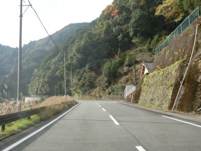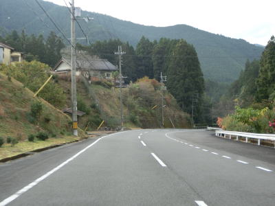 | 池郷橋からはセンターライン付きの2車線道路になる。池原橋の西詰を過ぎると集落が途切れ、やや急な上り勾配となり、程なくしてセンターラインがなくなる。1.8車線幅と強烈に狭い訳ではないが、勾配がきつくカーブが多く、ヘアピンカーブも2ヶ所ある。 | ||