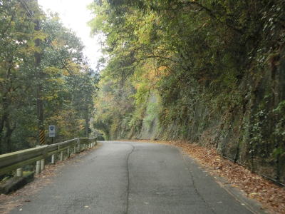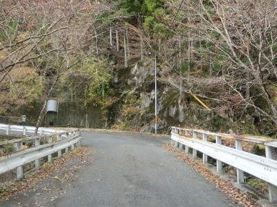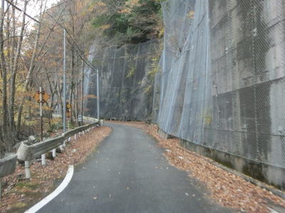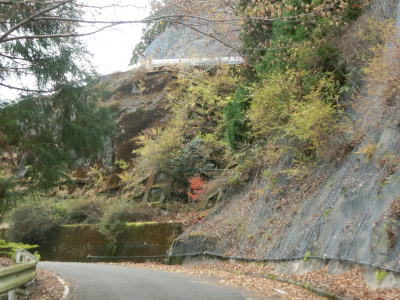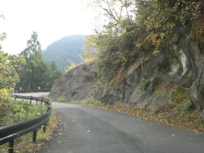 | 奥地川の源流に近い場所の谷を渡ると標高は700mを超える。相変わらず狭い断崖路が続いているが、ガードレールの設置率は高く転落の可能性は低い。走行した日は路上に落ちていた石はほとんどなかったが、水の通り道になる谷は土砂が丸見えで大雨でも降れば何らかの影響が出そうなかんじであった。 | ||