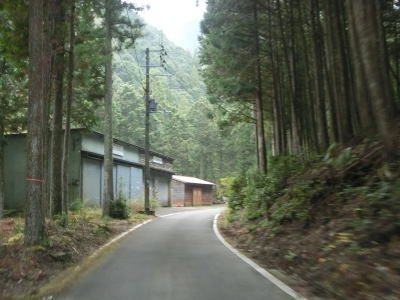 | 123.アルミキャスターゲートが設置されている | 124.断崖を走る1.0車線幅道路 | 125.林業用の倉庫の前を通る |