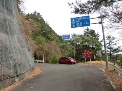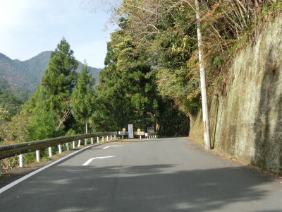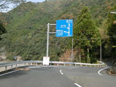 | 尾根の奈良県側を通る名称不明の林道が交差している地点が県境、牛廻越である。ワラビ尾交差点からの距離は約29kmでその大半が酷道区間だが、これまでの2ヶ所の酷道区間とは異なり、沿線に集落が存在している点が異なる。この先、和歌山県側も酷道区間が続いており、案内標識の龍神までの19kmに近い距離の酷道区間をまだ走らなければならない。三大酷道のひとつに数えられるだえあって、酷道区間のひとつひとつが長い。 | ||
