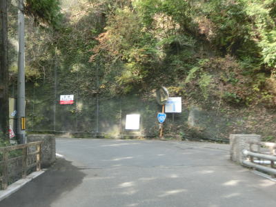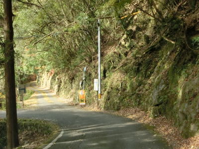 | 則本谷集落への村道(林道?)との交差点を通過してヘアピンカーブを曲がって西川から離れる。ヘアピンカーブの先には公衆トイレが設置されており、周辺に家屋のない場所にも関わらず水洗式で手入れも行き届いていた。 | ||