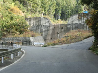 | 源流に近い西川に沿った狭路をひたすら走る。道幅は1.0〜1.5車線と狭く離合できない場所が多い。新しい舗装や法面保護工が確認できるが、おそらく工事の際は時間帯別通行止規制が敷かれていると思われる。西川に注ぐ沢をいくつか渡りながら狭路を走っていると林道(作業道?)との交差点を通過する。山深い場所の行き止まりの林道との交差点にもかかわらずミラーが設置されているので需要のある林道なのかもしれない。 | ||