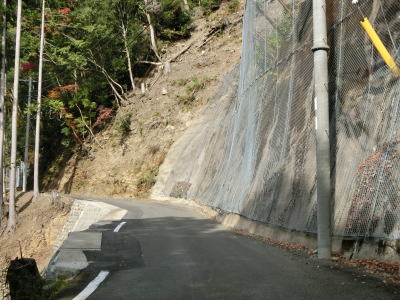 | 1.0車線幅の割合が増えて対向車に出くわすと一気に難易度が上がる道路状況になる。小山手集落を通過するが、集落の規模は小さいもののヘリポートが設置されている。これまでの集落はある程度の数の家屋が集まっていたが、小山手集落は家屋が点在している。 | ||