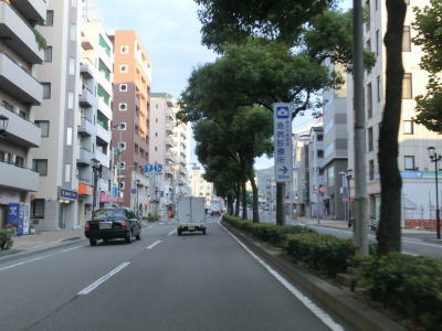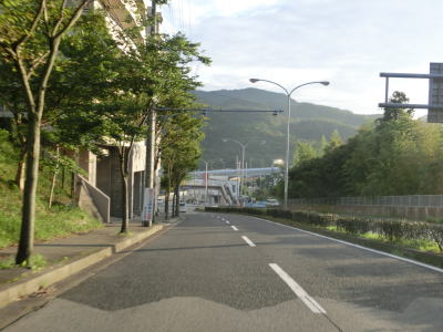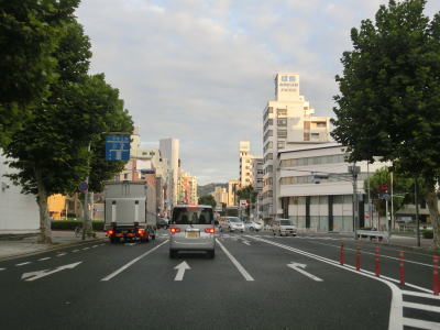 | 1.R28有馬道交差点 | 2.片側2車線道路を北上 | 3.建物の高さが低くなるのが分かる |