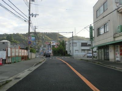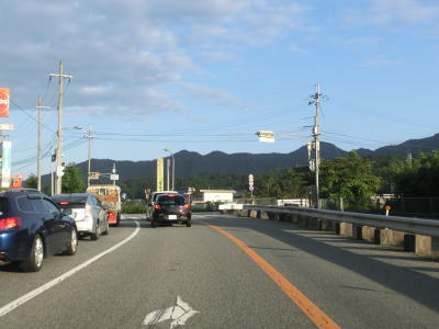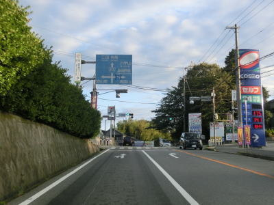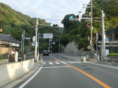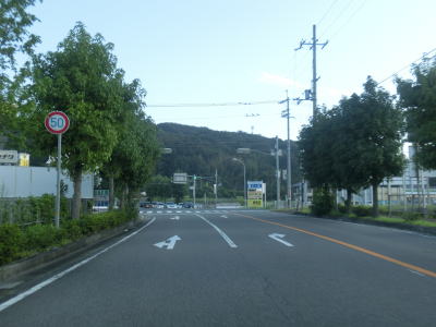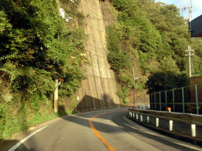 | 4.市道の山麓線との平野交差点で左側車線が左折専用車線になる | 5.豪雨時には落石崖崩れのおそれあり | 6.右側の道路は旧道 |