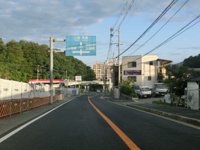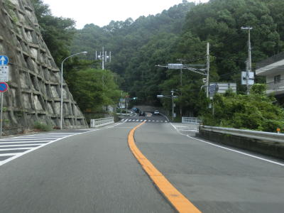 | 勾配は急だが2車線と割合整備されており走りにくさはあまり感じない。旧道が残っている箇所もあるが、封鎖されており車両での通行はできない。福地トンネルの旧道も同様である。産廃処理業者の事務所をいくつか通過しながら勾配を上っていると岩谷峠を越える。峠からは下り勾配となり、神戸市淡河環境センターの前を通過する。 | ||