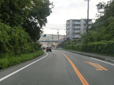 | 天王ダムの東の小部トンネルを抜けると平坦になり、兵庫r52水呑交差点からは下り勾配となる。鈴蘭台東口交差点からは再び平坦になるが、緩やかな上りとなっている箇所もある。特筆すべきは沿線及び周辺の建物の数だろうか。平野交差点から小部トンネルにかけては沿線の建物は非常に少なかったが、水呑交差点以北はそれらが一気に増える。R428の西に鈴蘭台と呼ばれる住宅地が広がっており、その中に北区の区役所も立地している。もちろん鉄道も通っている。 クリーンセンター付近から上り勾配となり、兵庫r197二軒茶屋交差点を過ぎて程なくして北向き車線に登坂車線が現れる。勾配はさほど急ではないが、平野交差点から見れば長い上り勾配だったため、足の遅い車両を抜く事ができる貴重なポイントである。 |