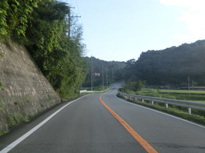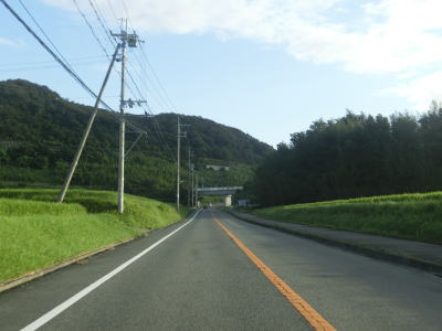 | 岩谷峠からは下り勾配となるが南側と道路状況は周辺の景色はほとんど変わらない。急なカーブは少ないが小刻みなカーブは多い。それでもセンターラインのある2車線道路なので走りにくいと言えるレベルではない。淡河の集落に入るまで下り勾配が続いており、結構な距離があるものの登坂車線は設けられていない。 | ||