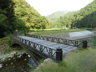 | 平野集落と神子畑集落の間に神子畑鋳鉄橋公園がある。明延鉱業が運営していた鉱石輸送用の明神電車のトロッコ部の復元モデルが展示されており、線路を描いた歩道もある。歩道の先には神子畑鋳鉄橋という日本最古の鋳鉄製の橋が保存されている。 | ||
