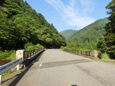 | 清水橋を渡った後に神子畑集落を通り抜けるが、センターライン付きの2車線道路ながら車線幅がやや狭い。神子畑選鉱場の遺構の前を通り過ぎる。見学者用の駐車場が整備されており、遺構のひとつであるムーセ旧居のさらに奥に出入口がある。 | ||