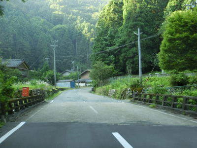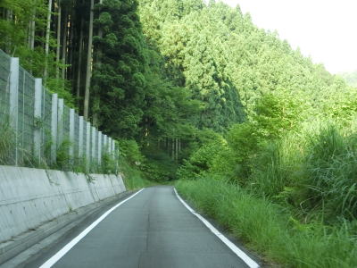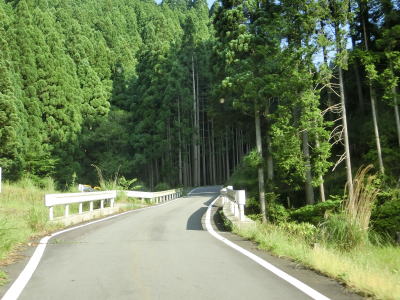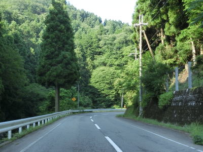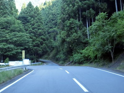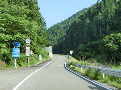 | ハンプのない急カーブをいくつか曲がった後に笠杉トンネルをくぐって宍粟市に入る。R429が国道に指定された1982年頃に開通したトンネルだが、当時のR429は岡山県倉敷市〜津山市間だったため国道として開通した訳ではない(京都府福知山市まで延伸指定されたのは1993年)。 宍粟市に入ってからは10%と急勾配ながら線形は良く急なカーブがない。山間部のため歩道は設置されていないもののはっきりとセンターラインが見える2車線道路のため、朝来市側に比べると走りやすい。 |
