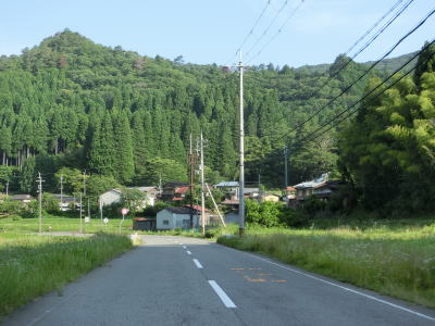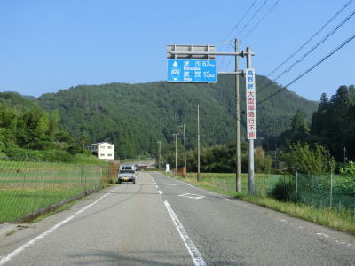 | 黒原川に架かる坂谷橋の手前で旧道らしき市道との交差点を通過する。大野橋を渡った先まで大野集落の西を通っているが、家屋の多くは旧道沿線にある。家屋が点在している中を緩やかに下っており、多少の急カーブはあるものの交通量が少ない事もあって概ね走りやすい道路状況と言える。 | ||