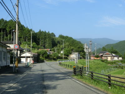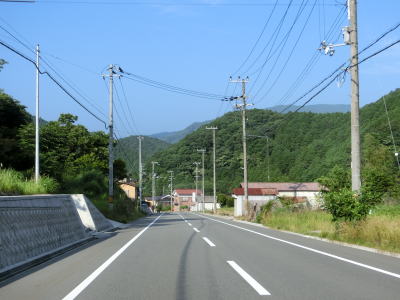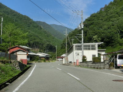 | 左カーブ辺りから明らかに上り勾配となって平集落を通り抜ける。平集落と次の高野集落との間にセンターラインのない区間があるが、2.0車線幅程度はあるためさほど気にならない。高野集落ではセンターライン付きの2車線道路になるが、集落の奥で再びセンターラインなくなる。 | ||
