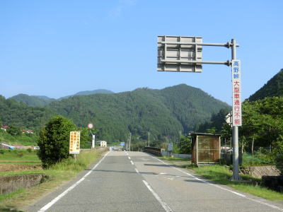 | 平野集落を過ぎると異常気象時通行規制区間に入る。宍粟市との境の手前までの5kmが対象の区間で、連続雨量が110mmを超えると通行止になる。異常気象時通行規制区間に入ってからは蛇行している神子畑川の谷筋を走っているためカーブが多くなるが、工事による片側交互通行規制箇所を除いて2車線道路のため走りにくさはさほど感じない。 | ||