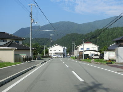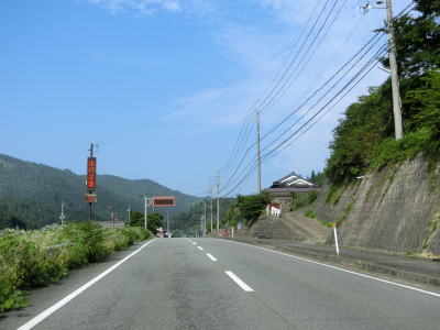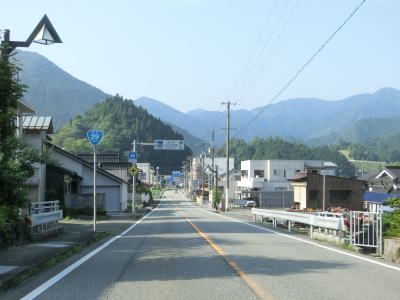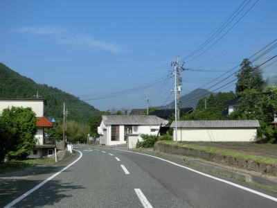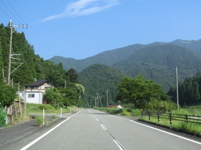 | 室橋以降はセンターライン付きの2車線道路を走り、断続的に続く集落を通り抜けながら西山川の流域を上って行く。県境に向かう区間とは言え開けた場所であり、これまでの峠のような薄暗さは一切感じない。 | ||