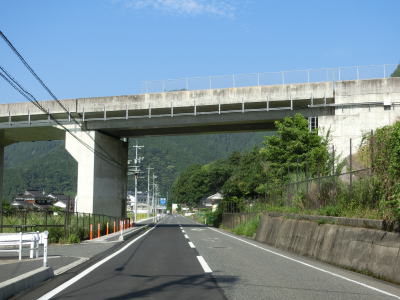 | 後山川流域の2車線道路を快走していると境橋を渡り、程なくしてE29鳥取道の後山川橋の下をくぐる。E29鳥取道はE72北近畿豊岡道と同様に新直轄方式のため無料で通行する事ができる。 | ||