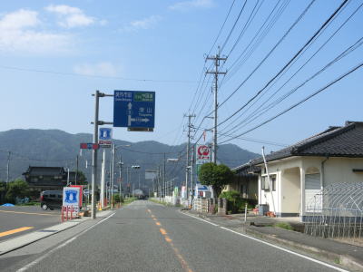 | 緩やかな左カーブを曲がりながら岡山r347交差点を通過する。r347は田熊高野停車場線という路線名だが、R53との高野駅前交差点までしか指定されておらずR53と高野駅との間は指定されていない。なお、r347には家屋の間を通り抜ける1.0車線幅狭路区間があるため、遠回りではあるがR429とR53を利用した方が良いと思われる。r347交差点を過ぎてからは下り勾配となり、平坦になった後に加茂川に架かる浜崎橋を渡る。 | ||