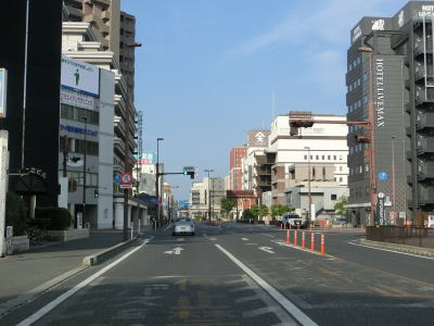 | 倉敷駅前交差点を過ぎると狭い歩道の対面2車線道路を進み、岡山r274とのNTT倉敷東交差点を通過する。西隣の市道とのNTT前交差点は直進だが、右折車線の有無によって若干カーブしながら通り抜ける必要がある。さらに進むと片側2車線の岡山r60と同じく片側2車線の市道との老松西交差点を通過する。倉敷市の中心部とあって信号機付きの交差点があるため流れは良くない。交通量の多い昼間であれば渋滞の発生も充分考えられる。 | ||