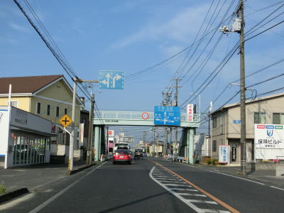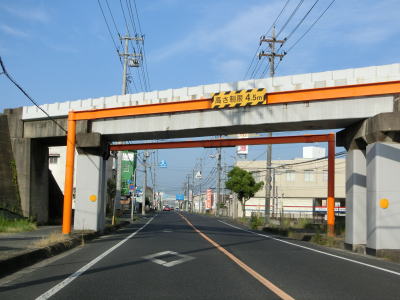 | 片側2車線の産業通りとの玉島警察署南交差点の直後に中潟高架橋をくぐる。この高架橋は玉島臨海鉄道の跨道橋を道路用に転用したものである。玉島臨海鉄道は未成線であり列車が走った実績はないが、中潟高架橋の他に橋梁跡がいくつか見られるなど遺構が意外に多い。 末広橋を渡った直後に岡山r41・r191中央町1交差点を通過する。交差点の名称が示すようにかつての玉島市の中心部と言える場所であり、北東には倉敷市役所玉島支所がある。なお、玉島市が児島市とともに合併して倉敷市になったのは所謂平成の大合併以前の1967年である。さらに2車線道路を走っていると短い勾配を上って幹橋の手前で岡山r35・r47変電所前交差点を通過する。 |