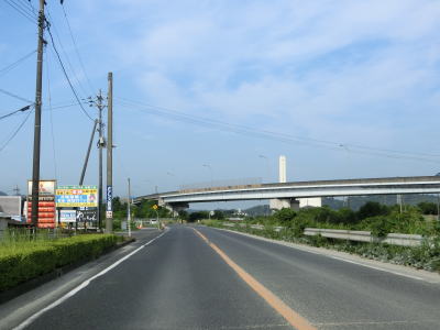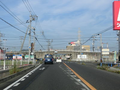 | かつてR2だった対面2車線道路を南西の方角に向かって走る。ほぼ平坦な直線道路で線形は良いが、歩道が片側にしか整備されていない区間が少なからずある。400番台国道であれば普通と言える状態なのだろうが、一桁幹線国道だったと考えると貧弱な道路状況と言わざるを得ない。 大島交差点から約5.7kmでR2との大西交差点を通過する。現在のR2は片側2車線の大西高架橋で交差点の上を越えており、一桁幹線国道に恥じない道路状況である。なお、R2は大西交差点を境に東側が岡山バイパス、西側が玉島バイパスとなっている。 |