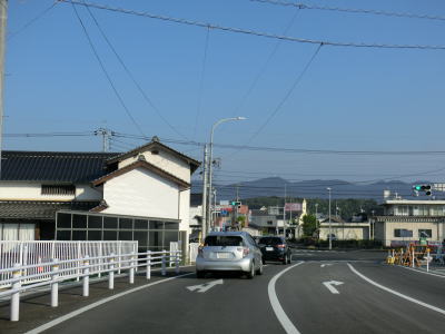 | 中の島交差点からすぐに中の島橋を右にカーブしながら渡る。市街地を迂回するバイパスではあるものの、開通して年月がそれなりに経過しているようで沿線には多くの家屋が建っている。 一畑電車に沿って走っていると島根r228雲州平田駅前交差点を通過する。交差点の真横に駅があり、r228は平田停車場線という停車場線ながら駅とは反対方向に延びており、島根r232と交差している。この事からおそらくr232がR431の旧道に当たるのではなかろうか。 |