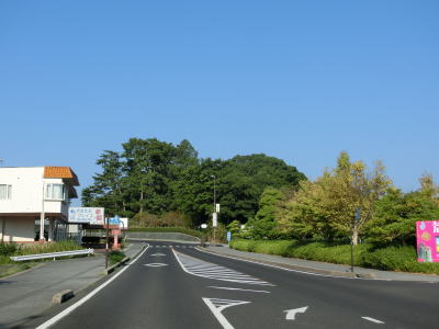 | さらに右カーブを曲がっていると島根r161交差点を通過する。右が出雲大社であり、勢溜の大鳥居から参道に入る。r161を南下すると一畑電車大社線の出雲大社前駅や道の駅「大社ご縁広場」あり、さらに南に大社駅があったが、1990年にJR大社線が廃線になった際に廃止されている。 出雲大社のP1駐車場の傍で旧道との交差点を通過する。左折の「大型車通行困難」とされている道路が旧道であり、家屋が建ち並ぶ中を通り抜ける1.0〜1.5車線幅狭路である。旧道との交差点からは上り勾配が続いており、奉納山公園付近で下りに転ずる。 |