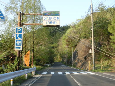 | 白椿湖の湖畔にふれあいの森(白椿湖)があるが、駐車場と公衆トイレ、食事処のみと規模は小さい。駐車場とは反対側になるが、湖を渡る吊橋が架けられており対岸に公園がある。白椿湖の湖畔を走っているものの樹木等に視界を遮られるため湖面はほとんど見えない。湖から川に戻った後に第二川路橋と第一川路橋を渡る。集落近くの旧道は通行可能であったが、2つの橋の旧道は閉鎖はされていないが荒れており進入しようとは思えない状態である。 | ||