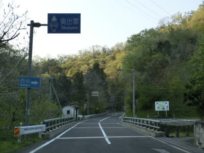| 飯梨川に架かる待神橋を渡ると上り勾配となり、集落が途切れた後に久比須峠を越えて奥出雲町に入る。峠付近の標高は400m強と決して低くないが、道路状況が良く勾配が緩やかなため走りにくさは一切感じない。 | ||