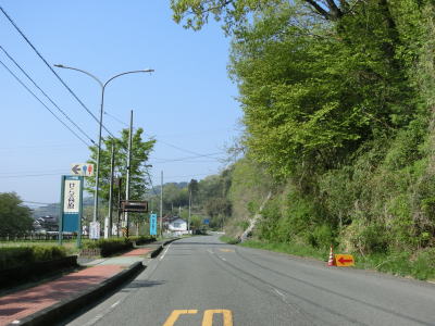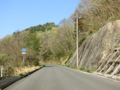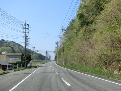 | 矢多田川の谷筋を南下していると松崎大橋でJR福塩線の上を通る。内部でカーブしている松崎トンネルをくぐり、日向中集落や日向下集落を通り抜ける。谷筋を通っているとは言え勾配もカーブも緩やかで走りやすい道路状況である。 | ||
