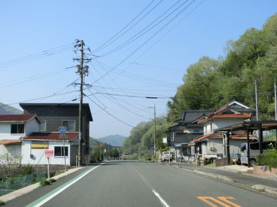 | 府中市に入ってからも緩やかな上り勾配が続いている。勾配が下りになるのはやや急な左カーブを曲がって野市大原集落に入ってからである。比較的開けた谷筋を下っており、カーブが非常に緩やかなため走りやすい道路状況である。 | ||