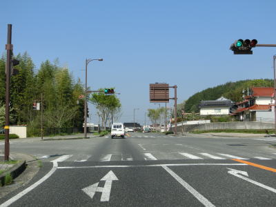 | 228.賀茂バイパス(の暫定道路)との交差点 | 229.制限速度は30km/hと低め | 230.横断歩道は5本分 |