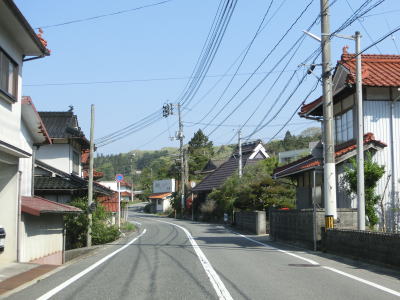 | 上郷橋を渡って徳良川の右岸に移ると郷之原北集落に入るが、家屋が密集しておりやや狭苦しさを感じる。東に僅か50m程度の位置にR486が並走しており、和木交差点で交差する。和木交差点を直進して一万橋を渡る。 | ||