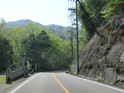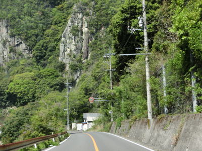 | 椋梨ダム以南は深山渓谷と呼ばれており、走行注意レベル4に指定されているだけあって山岳部を通っている。ただ、道路状況はセンターライン付きの2車線道路であり、急なカーブはあるものの勾配は緩やかで酷道と言える程ではない。夫婦岩やその傍の中州には小規模な園地が整備されている。 | ||