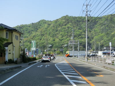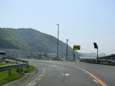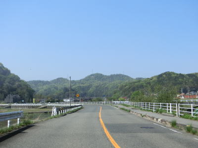 | 新庄交差点から南は賀茂川の流域を走る。左岸を走っていると前後にS字状の急カーブのある大福地橋を渡って右岸に移って堤防上を走る。竹原市の市街地に近い場所ながら交通量はさほど増えず快走できる。 | ||