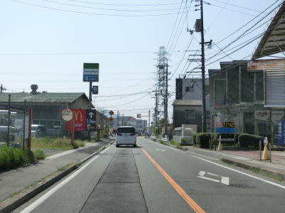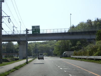 | 葛子川の流域を緩やかに下って行く。歩道は片側にしか設置されていないが、車両と歩行者の通行量を考えれば充分であろう。緩やかな勾配がさらに緩やかになるとR2新庄交差点に至る。終点が接続しているR9と対をなすR2との交差点だが、起点ではなく直進してさらに南に向かう。 | ||