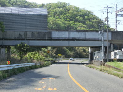 | 勾配が10%になると反対側車線に登坂車線が現れ、その途中で市境を越えて竹原市に入る。登坂車線の起点の直後に旧道と思われる市道との交差点を通過し、谷筋の対面2車線道路を走っていると山陽新幹線の下をくぐる。 | ||