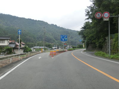 | 集落を繋ぎながら川沿いの2車線道路を走る。勾配はほとんどないが急なカーブは少なくない。それでも2車線道路のため交通量がさほど多くないせいもあって概ね走りやすいと言える範疇に収まっている。右の急カーブの先で津浪洞門に入り内部で左にカーブして抜けでた直後に中国道の高架をくぐる。インターチェンジでの直接の接続はないが、町道を少し東に進むと加計スマートICが新たに設けられている。ただし、広島北JCT方面としか接続していない。 | ||