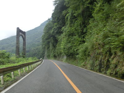 | 91.旧道の雰囲気が出ている | 92.杉林の薄暗さが酷道を盛り上げる | 93.離合できる場所は少ない |