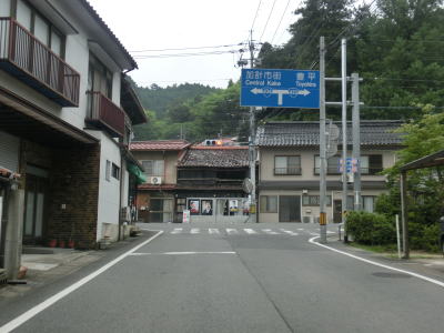 | 鶉木集落に入ると多少空が開けた状態になり、路面状況もマシになる。鶉木集落のほぼ中央で町道か林道との交差点を通過するのだが、R433は右折しなければならない。右折と言うよりUターンに近いような形状で、ソトバがなければ間違いなく直進してしまうだろう。案内標識は設置されていないのでソトバを見逃さないように注意しなければならない。なお、右折側に「大型車通行困難」の標識が立てられているが、そもそも大型車ではこの鋭角交差点を曲がる事そのものが困難である。 | ||