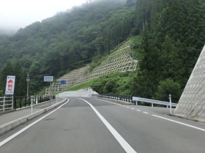 | 106.崩落復旧現場 | 107.センターラインがなくなる区間あり | 108.センターラインが復活すると同時に左急カーブ |