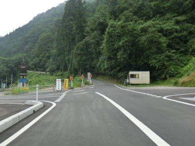 | 町境が峠ではないため北広島町に入ってからも上り勾配が続いている。急な勾配の箇所もあるが2車線なので走りやすいと言える範疇である。北広島町に入ってから約1.1kmでまだ新しいアスファルト舗装の箇所を走り、広島r308との交差点に至る。舗装が新しいのはr308交差点までで、以降は舗装が元に戻るどころか道幅が1.0車線幅にまで狭くなってしまう。 | ||