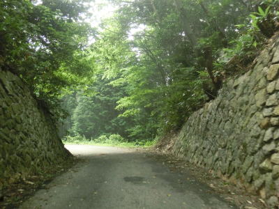| 94.峠部分には石垣がある | 95.峠の東側もガードレールのない狭路 | 96.ガードレールの設置率は低い |