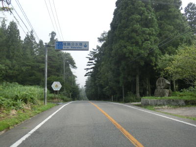 | 北広島町中原の標高509m地点に石碑と陰陽分水嶺と表示された標識が立てられている場所を通る。峠の北側は江の川水系として日本海へ、南側は太田川水系として瀬戸内海に流れる。日本海と太平洋(瀬戸内海)に流れる川を分ける峠という事で“陰陽分水嶺=中央分水嶺”と言えるだろう。名もなき中央分水嶺の峠からは下り勾配となるが、走りやすい2車線道路が続いている。重複して峠を越えてきたr40が分岐する交差点を通過するが、このr40は広島r308〜r40間の狭路区間をパスできるため、むしろ県道の方が交通量が多い。 | ||