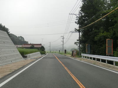 | r308交差点からは1.0車線幅と狭いうえに舗装状況が悪く凹凸が激しい。ガードレールのない箇所もあるが、すぐ左手の一段低くなっている場所に集落があり、人里離れた場所ではない。道幅が広くなったと思った矢先に道路が二手に別れるが、看板では右側の道路がR433だと示している。家1軒を通り過ぎた所で合流する事からガードレール沿いの道路が旧道と思われる。その後は1.0車線幅が続いているが、道路拡幅のためと思われる工事現場があるため、改良する意思はあるようだ。 | ||