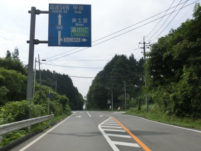 | 野部集落を通り抜けるとセンターラインが復活して2車線道路として緩やかな勾配を上る。名もなき峠で高北広域農道との交差点を通過するが、左折の三次市街地方面の広域農道も開通しているのだが、案内標識には行き先どころか道路そのものが表記されていない。広域農道との交差点からは下り勾配となり、旧高宮町の中心部に向かって下っていく。 | ||