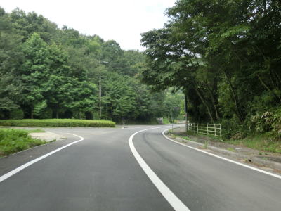 | 北広島市に入ってすぐにR433のおにぎりが確認できる。この二重谷峠区間で唯一のおにぎりで、反対方向に走っていればその裏面しか見る事ができない。峠付近とは異なり勾配は緩やかになっているが、小刻みなブラインドカーブは多く道幅は1.0車線幅が基本である。ただ、この日は草が刈り取られた後であり生い茂っている時よりも幾分かは走りやすくなっているものと思われる。 | ||